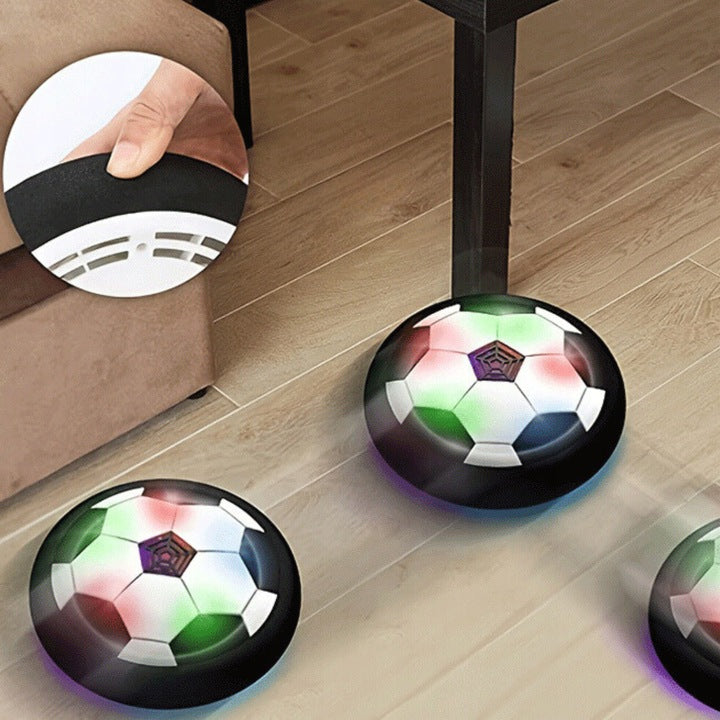 Tak! Wbudowany wiatrak tworzy delikatną poduszkę powietrzną, dzięki której piłka ślizga się płynnie po powierzchni bez tarcia. Wystarczy gładka podłoga (np. panele, kafelki, parkiet), by efekt lewitacji był w pełni widoczny.